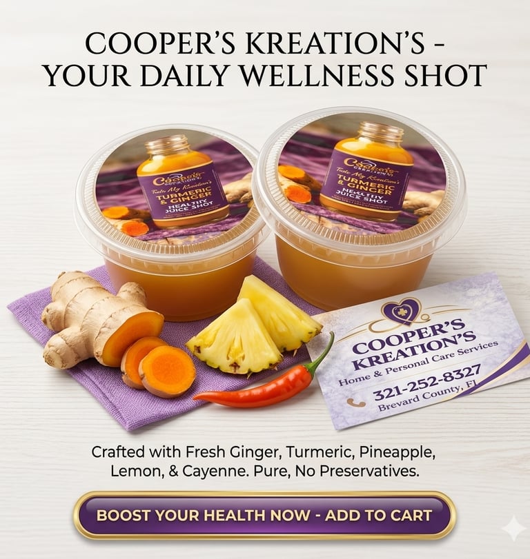 Welcome to Cooper’s Kreation’s. My journey began with a simple belief: that true care extends beyond the physical and into what we use to fuel our bodies. With over nine years of experience in the healthcare industry and a lifelong passion for the culinary arts, I’ve dedicated my work to blending professional caregiving with the healing power of natural ingredients